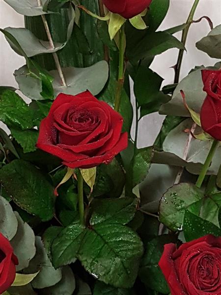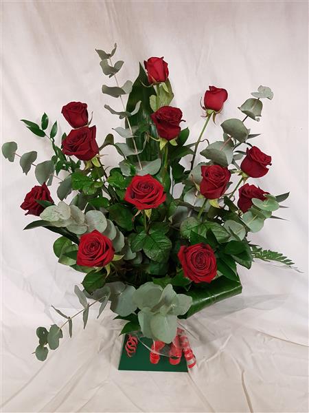 this is a stunning display of romantic red roses, its a big and bold display